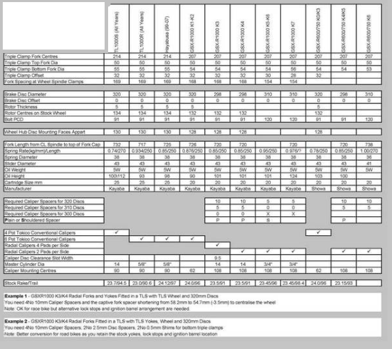 FORK CONVERSION CHART